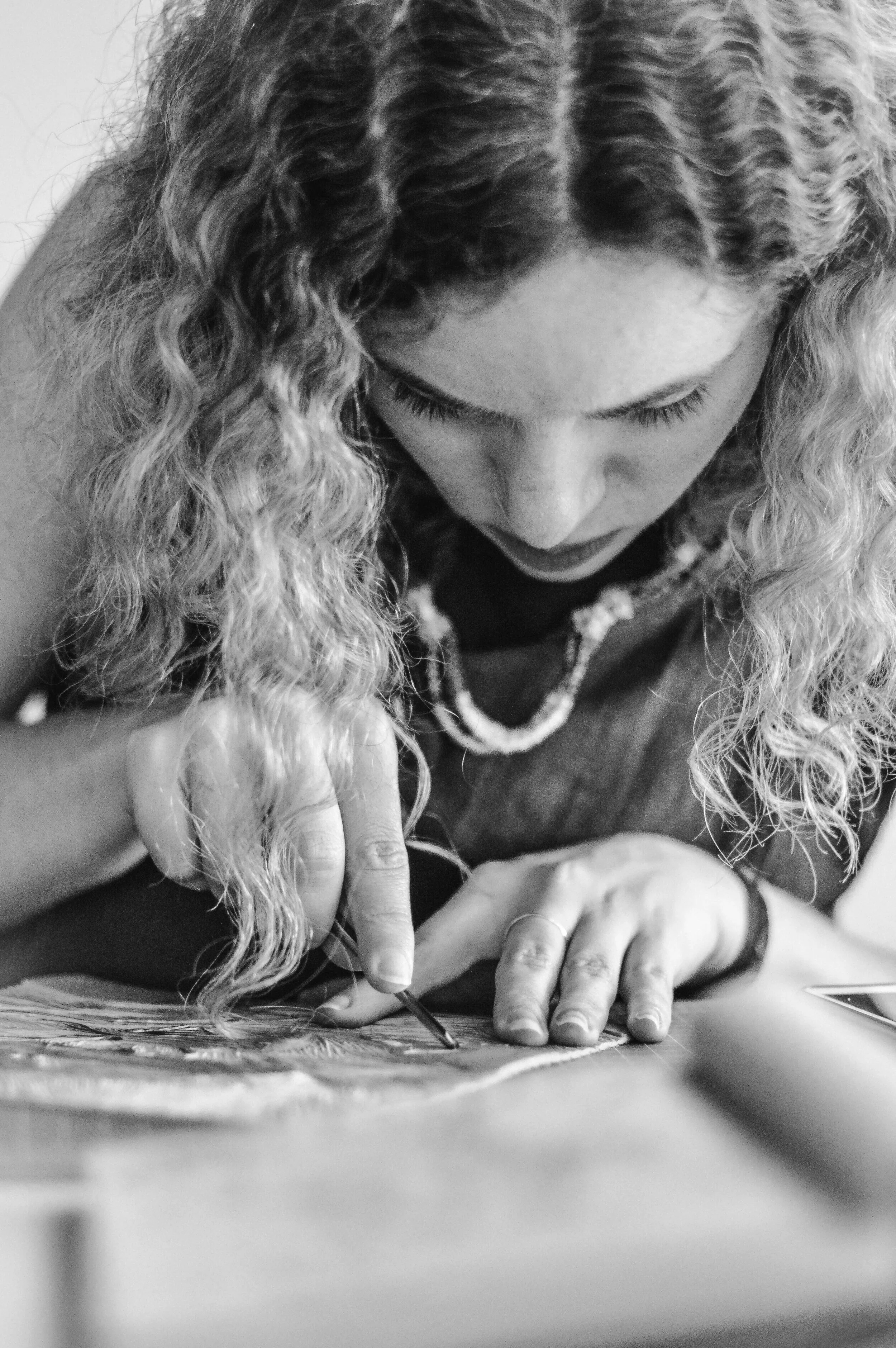 Her theoretical work explores methods of extrapolation, where the notion of line as utterance and notation symbol expands through the actions of repetition and process. She often works between the mediums of printmaking, drawing and sculptural casting.